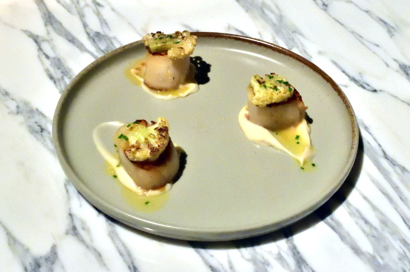 The excellent Seven-Vegetable Terrine is brimming with bold flavors and is equally appetizing to the eye. Sauteed Scallops aren't as big as one might typically find, but they're nicely paired with roast cauliflower, which adds an appealing texture.