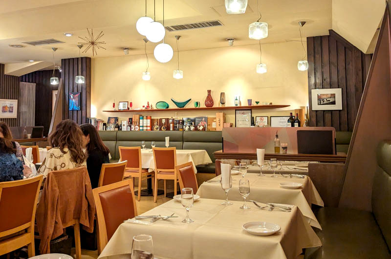 The large dining room sports a stylish retro-1960s decor, with cream-colored walls and tablecloths, comfortable chairs and artwork on the walls. It's quite lively during busy lunch hours, but the staff handles the crowds efficiently. In the evenings a sommelier can help you navigate the Italian-centered wine list. Most bottles are priced in the Y5,000-12,000 range, but can go much higher if you're in the mood for something special.