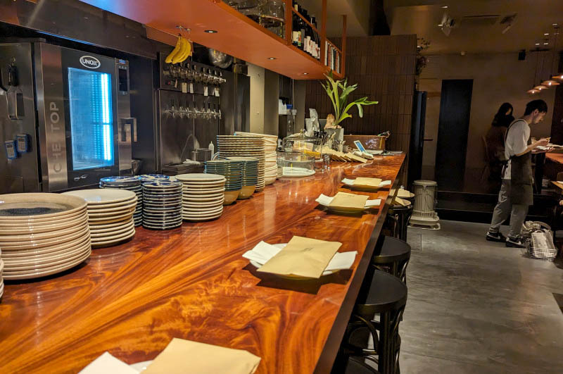 The drinks list features a well-selected, ever-changing assortment of craft beers, both on tap and in cans. Wines by the glass start at just over Y1,000. The decor is quite stylish, with excellent lighting. Budget around Y6,000 for food and drink; reservations are recommended.