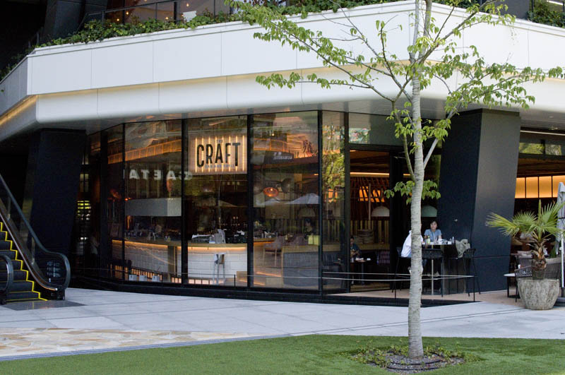 The Craft Bar & Grill is run by the Tokyo-based Huge restaurant group, known for their flashy dining rooms and wide-ranging menus. Drinks include craft beers from Yokohama's Number Nine Brewery and Yamanashi's Iwai Brewery, and a winelist where everything is priced at Y3,300 per bottle.