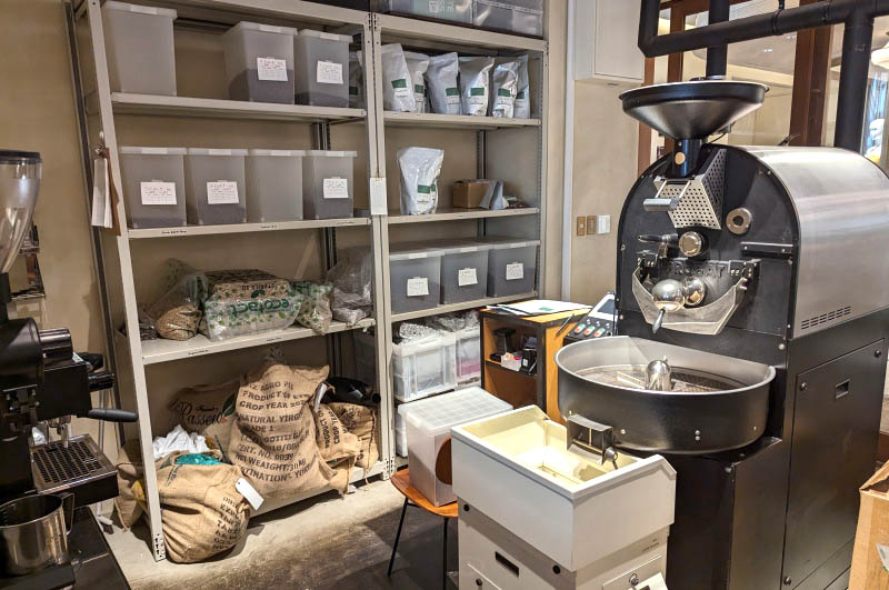 Original coffee blends are designed to pair well with the cafe's desserts, and beans are roasted on-premises in a German-made Probat coffee roaster. They serve both drip coffee and espresso beverages as well as herbal teas and wine by the glass.