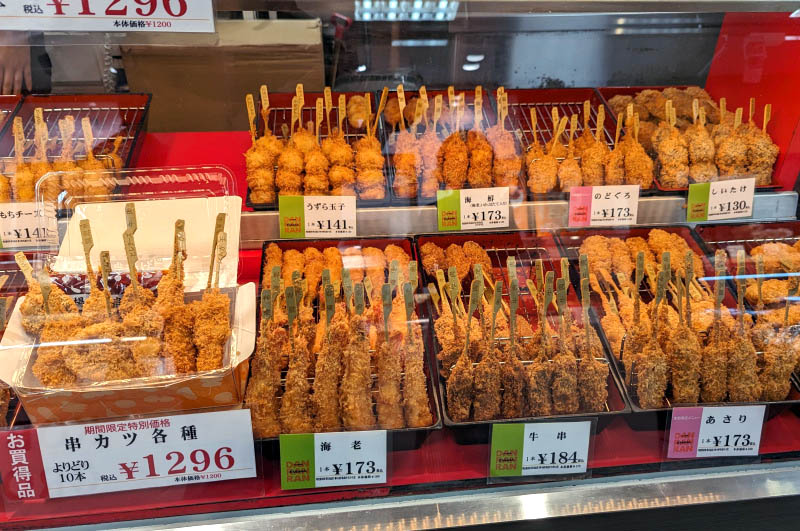 Stretching a couple of city blocks, the sprawling basement food hall at Mitsukoshi is a worthy sightseeing stop on any tour of Fukuoka. Ready-to-eat prepared foods cover a wide range, from kushiage and yakitori skewers to Chinese dumplings.