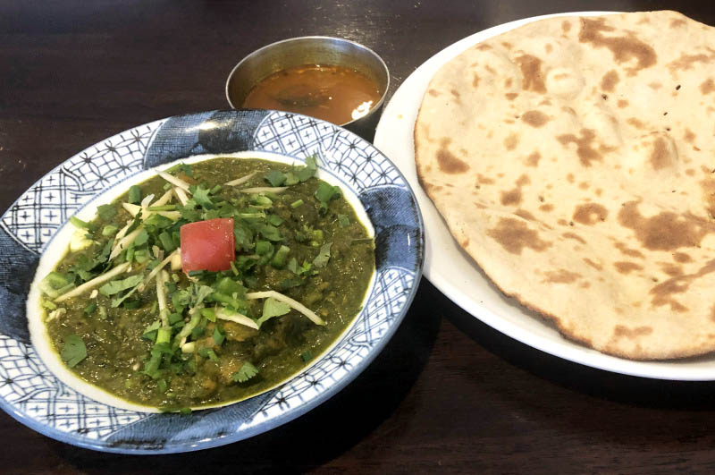Lunchtime set menus come with a nice salad with tofu, a delicious sour spicy soup, and choice of lassi or masala chai. Lunch prices range from 1,000 yen for a three-curry set to 1,900 yen for the Sahifa Set with three curries and an extensive tandoori platter. Other set menus include Afghani Lamb Chop with two curries, and Tandoori Chicken set with two curries. Allow about 3,000 yen for dinner with drinks.