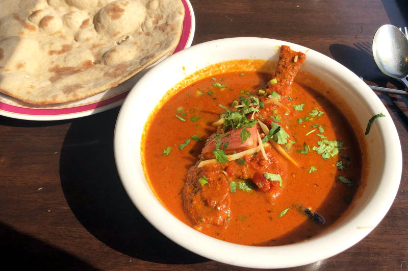 Royal Mughal cuisine is represented by two rich dishes that are slow-cooked for hours. The Nihari stew features a large chunk of lamb on the bone slow-cooked with herbs and spices. Originally a dish cooked for the Mughal Nawabs of Lucknow, you can taste the princely luxury in the depth of its creamy flavors.