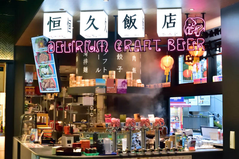 Taiwanese dim sum, spicy ramen bowls and rice dishes are served with craft beers at this kiosk inside Tokyo Dome City's popular food court. Five taps dispense a rotating selection of freshly brewed beers from Tokyo's Rio Brewery along with Delirium Tremens from Belgium, while ten other Rio beers are available in cans.