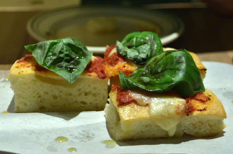 The bread at Rosemary's is an excellent home-made focaccia, served with toppings like mozzarella, basil, and tomato; mushroom-cheese; prosciutto, arugula and seasonal fruit; or a simple rosemary and salt.