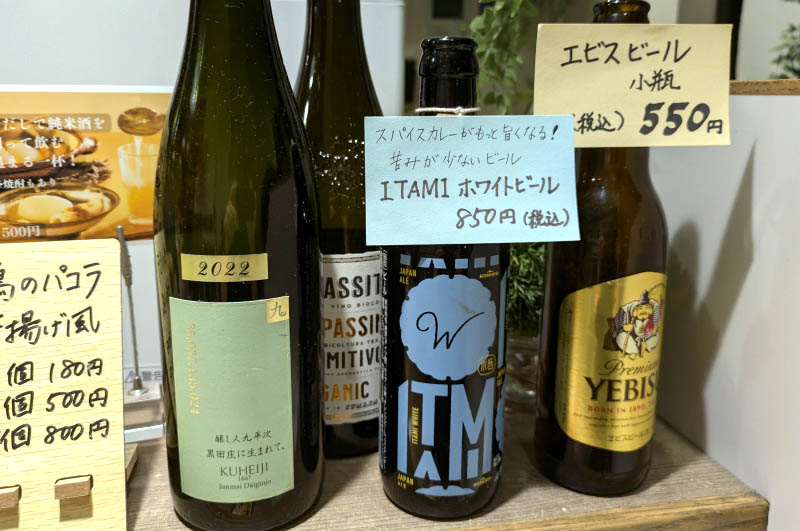 Drinks include plain and seasonal-fruit lassi, frozen lemon sours, premium sake, craft gin and craft beer (Itami White wheat beer from Osaka).