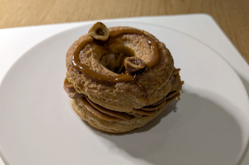 The menu is traditional French rather than anything Japanese-influenced, and it features luxurious main dishes like Lobster Thermidor, Beef Bourguignon and Tournedos Rossini beef with foie gras. Starters include a beautifully constructed Pate en Crout Alexandre Dumaine, based on a 400-year-old recipe.