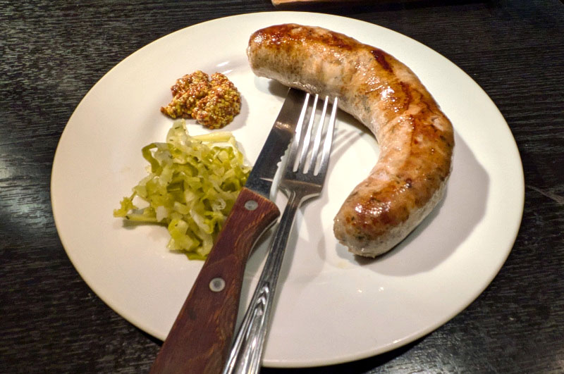 Other side dishes include seasonal vegetable ratatouille, Berlin-style potato salad with anchovies, and currywurst. Cheese platters are geared to either red or white wine, or you can order cheese and dried fruit individually. If you're planning a group get-together, there are a couple of special pork dishes that can be ordered in advance - Schweinshaxe (roast ham hock for 2-3 people), and Eisbein (salt-cured pig's knuckle, for 4-5 people).
