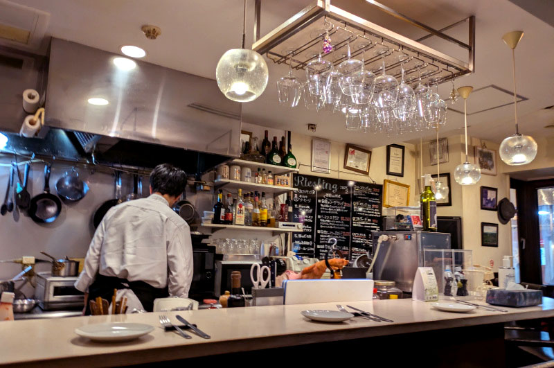 German wine bar Riesling offers very affordable wines and good, solid German food. The wine list features eighteen wines by the bottle, most of them in the Y4,500-6,000 range, and seven or eight by the glass. Erdinger weissbier is their draft beer.