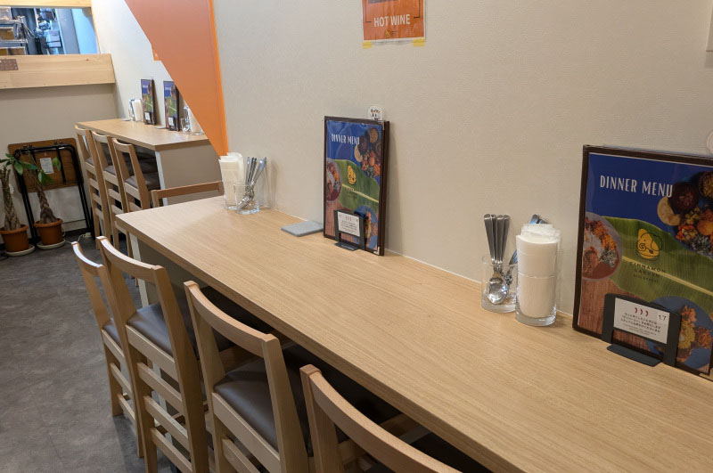 The restaurant is on the second floor of an older, restaurant-packed building in Yotsuya's entertainment district, in a typical curry shop space furnished with counters and small tables.