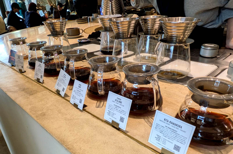 San Francisco-based Verve Coffee Roasters is the gourmet coffee destination in Yebisu Garden Place. You can choose from numerous single-origin pour-over coffees, a few espresso options, and cold brew and nitro brew when available. There are special seasonal blends, and they always have a "quick cup" option - convenient when you're in a hurry.