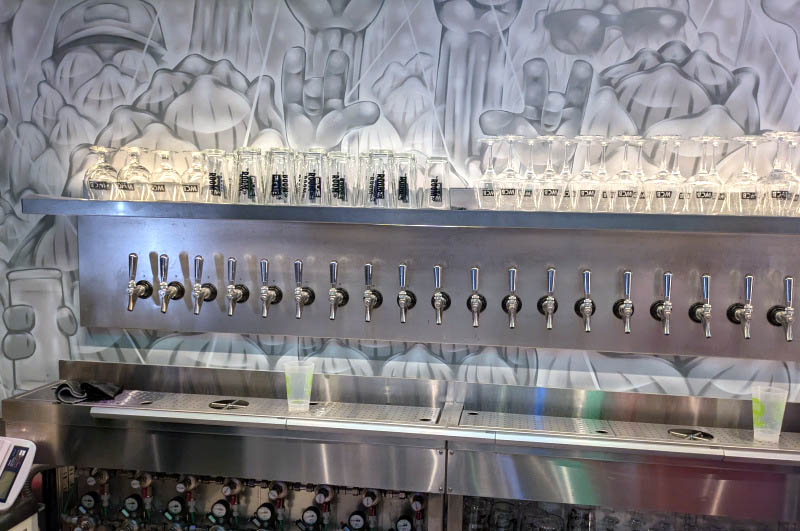 The decor is modern and attractive, with seating at the bar, a central raised counter, smaller tables, and a handful of outdoor tables on the front terrace. There's a good sound system, with live DJs on certain nights. Ordering is by QR code from an online ordering system, though there are also regular menus for both beer and food that you can peruse without taking out your cell phone.