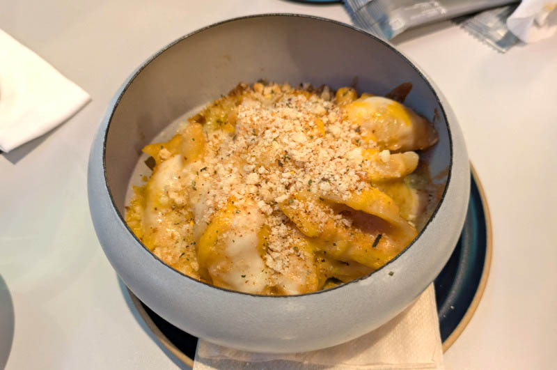 The shop's original mac 'n' cheese is scrumptious and distinctive, and is one of our favorite mac 'n' cheeses in town. It's made with two different noodles (shell-shaped cavatelli and skinny tubular bucatini) and incorporates a few different cheeses, variously gooey or toasted to crispness, to achieve enticing contrasts in both flavor and texture.