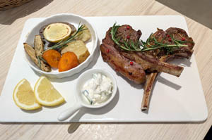 The three-course dinner menu comes with your choice of starter, middle course, and meat or seafood main dish. We started off....