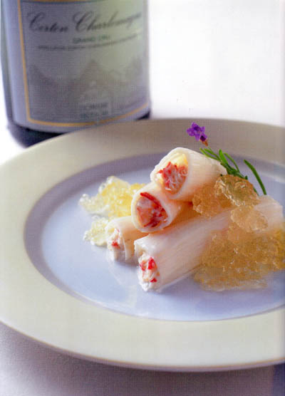 As with all crustaceans, crab traditionally pairs with lighter whites. However, here combined with the sweetness from the cooked naganegi and mixed with mayonnaise and fresh cream, it requires a medium- to full-bodied white. A premium oak-aged Chardonnay that has undergone malolactic fermentation and battonage (stirring of lees), from a cool climate, such as New Zealand, matches well. The latter vinification techniques create a softer, fuller wine with a rounded acidity that counterbalances the ingredients of the dish.