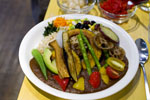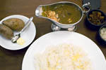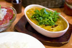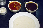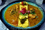 Indo-style Japanese curries are the specialty here, served in a variety of styles. Bombay curry and Kashmir curry are the two most famous dishes, and for Y1500 you can compare them side by side.