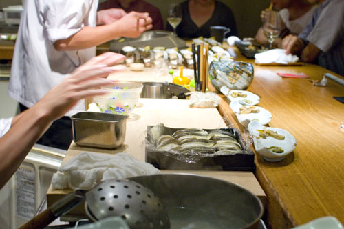 We're not sure whether to call it casual modern kaiseki or creative Kyoto cuisine, but the food here is exquisite in both flavor and presentation. The nine-course menu follows a traditional kaiseki sequence of preparation styles, and as each dish arrives the waiter provides detailed explanations of the many seasonal ingredients incorporated therein, right down to the origins of the miso paste and seasonings. The prix-fixe menu (the only choice at dinnertime) is an incredible bargain at just Y4000.