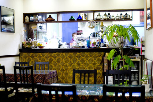 Home-style, vegetable-heavy versions of Moroccan dishes like beef tagine and cous cous are served at this casual basement dining spot. The meaty Harira soup, incorporating a blend of spices imported by the chef's family, is one of the highlights here. A beef tagine-centered set meal is Y1850 and one with chicken cous cous is Y1700, with Y300 discounts at lunchtime. Lamb tagines are also available, but with a minimum order of two people.