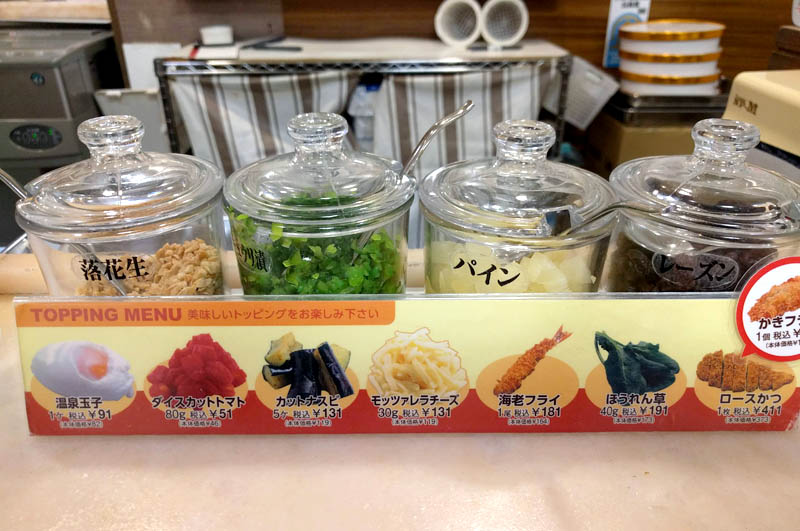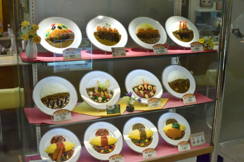 Other curry varieties feature pork cutlet (katsu curry), deep-fried prawns, deep-fried oysters, and seasonal vegetables, while optional toppings include mozzarella, Hokkaido buttered corn, poached eggs, and boiled shrimp. Fried-rice omelettes (omu-rice) are another specialty of the house.