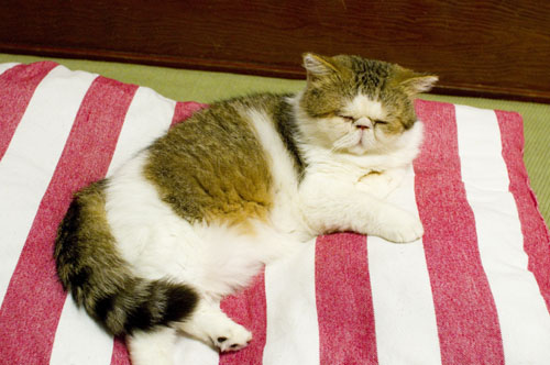 Maybe it was just a matter of the time of day we were there, but "Time for Cats" seems like one of the sleepiest cat cafes we've ever visited. Main activities here seem to be a) napping, and b) scouting out locations for upcoming naps. There was a flurry of activity when one cat drank some water, but that was about it - overall it was a very relaxing experience, and we began to feel a bit sleepy ourselves.