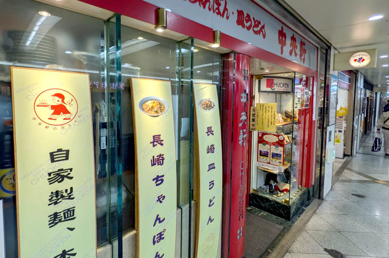Located midway along one of Umeda's sprawling underground malls, Chuoken is one of the rare places in town where you can find Nagasaki-style noodle dishes. Our favorite is their sara-udon - stir-fried seafood, pork and vegetables in a thick sauce, served over a bed of crunchy ramen noodles. (There are also several other branches scattered around town.)