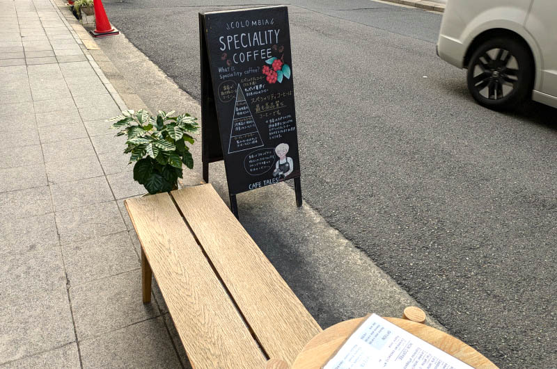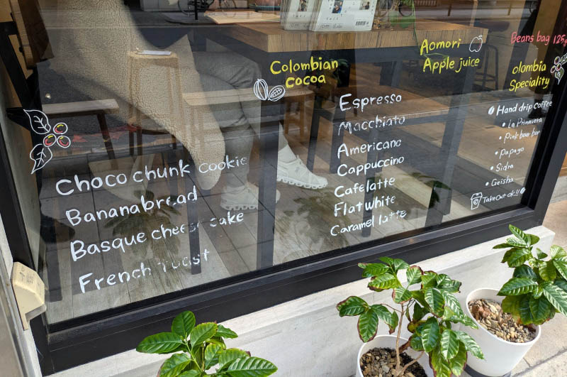 The cafe is furnished with five small tables, plus a bench on the sidewalk in front. Coffee starts at under Y600 per cup, though some special rare beans are more expensive.