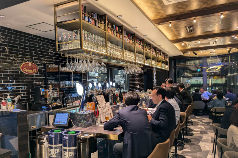 Located on the fourth floor of the Innogate Osaka station building at the western end of JR Osaka Station, this branch of the Belgian beer-bar chain serves more than fifty beers. There are seven on tap, among them Belgian standbys like Leffe Brown and Chimay White, with a few dozen more Belgian and German beers by the bottle.