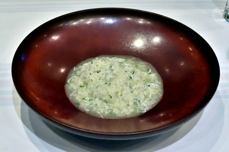 Some highlights from an autumn five-course lunch were excellent roast seasonal vegetables in tximitxuri sauce, grilled isaki (grunt), and an earthy risotto-style shirasu (whitebait) rice dish. Creamy Basque cheesecake, certainly that region's most famous dish here in Japan, was served with a refreshing pear sorbet for dessert.