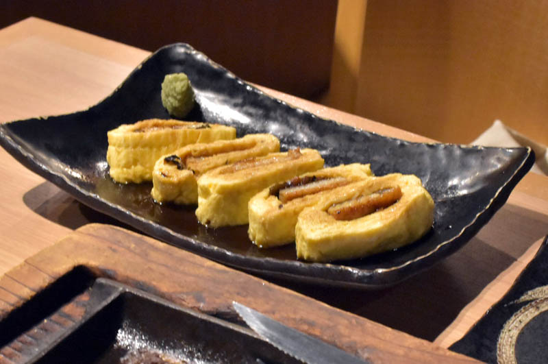 The food menu is organized around tofu, seasonal fish, and high-quality brand-name meats. (The last category is listed more specifically on the menu as Mitsuse chicken, Yamato beef and Kagoshima pork.) The dishes tend to be relatively simple (grilled chicken, stewed pork kakuni-style) and they're all well executed. There's often an unexpected ingredient that sets the dish apart - for example the tsukune meatballs (here wrapped around a wooden stick) came with an interesting garnish of shredded scallions and a spicy mayonnaise-like sauce that worked much better than the typical tare sauce. The omelette comes with a bit of thick, sweet sauce and a delicate filling of yuba (tofu skin) and fragrant mitsuba.