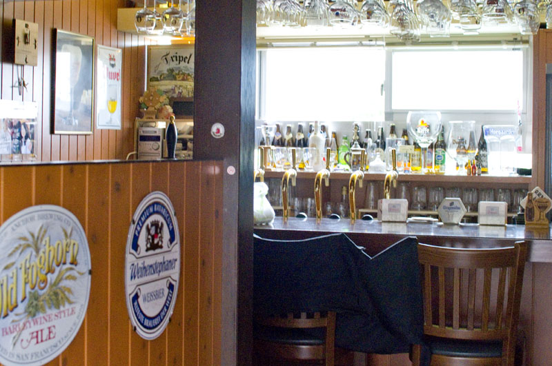 This cozy local beer specialist has seven seats at the bar and a few tables. In addition to four hand-pumped ales they offer more than 100 bottled beers, including a wide selection of Belgian styles. The substantial food menu features pizza, pasta, Shepherd's pie, and several dishes made with beer (try the chicken cooked in Asahi stout).