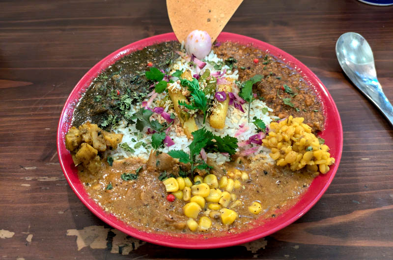 There are three daily curries on offer. As usual with spice curry, a combo plate is recommended so you can experience as many flavor juxtapositions as possible. Ingredient combinations are well thought out - for example the chef explained that the black bean curry is meant to be eaten with its accompanying pickles to bring out the full impact of the mustard oil seasoning. Our keema curry was studded with kernels of corn, which worked quite well to add sweetness and a crunchy texture.