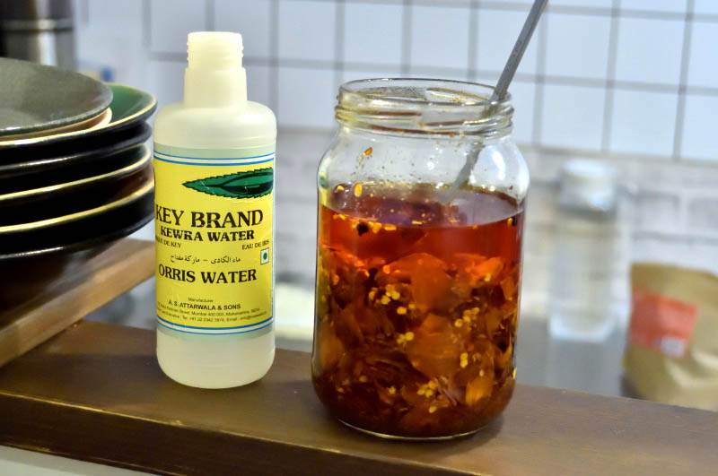 Midway through the meal the chef produced a bottle of Kewra water, an extract similar to rosewater that's used for flavoring biryani. He suggested adding a dab of it to our rice and then trying it with the various curries, and it really did make the flavors pop. (By the way, the rice served here is a mix of basmati rice and Japanese white rice, available in three different sizes.)