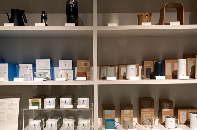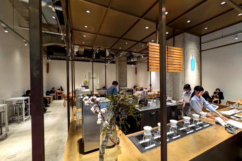 Blue Bottle's central-Kobe branch, designed by Tokyo's Schemata Architects, is a gorgeous spot in which to enjoy a coffee break. It's got a chicly minimalist concrete-and-wood decor, high ceilings, and lots and lots of space. The soundtrack is upbeat and modern without being intrusive. The coffee is reliably good.