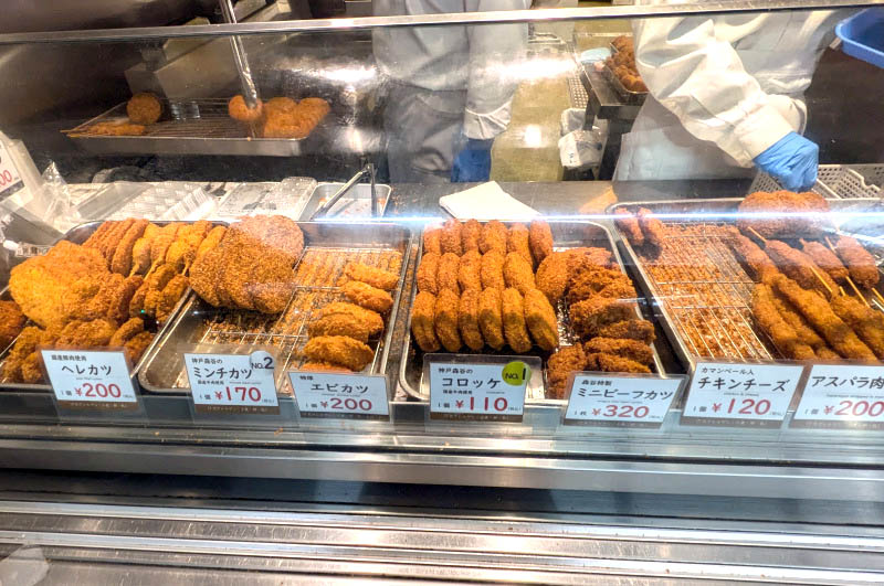 A century-old butcher shop, Moriya Shoten is famous for their deep-fried croquettes, reportedly selling two thousand of them every day. They also offer a line-up of deep-fried cutlets from their take-out window - beef, tonkatsu, ham, shrimp, and chicken among them.