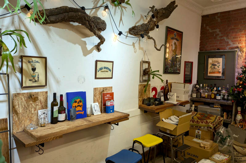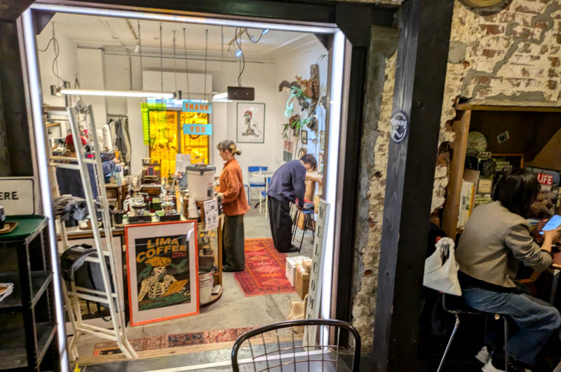 The charmingly furnished cafe area in back is quite comfortable, though depending on where you sit it can be noisy when there are multiple sources of music playing at the same time. There are also a couple of seats out in front of the shop.