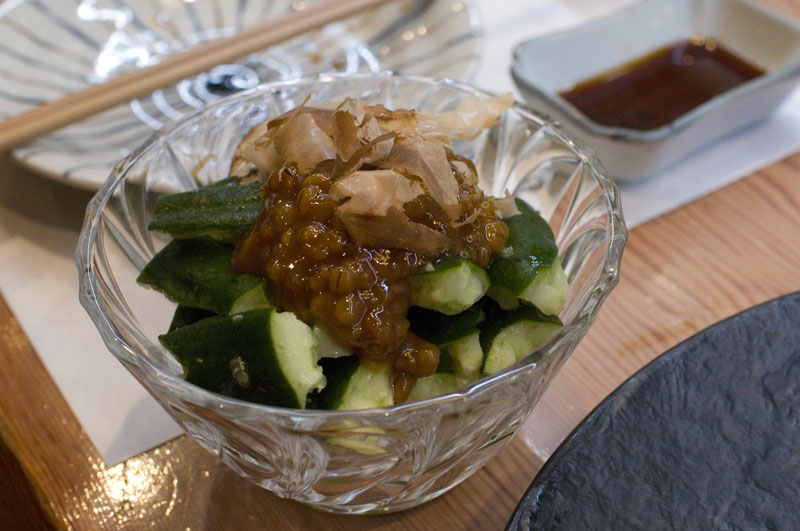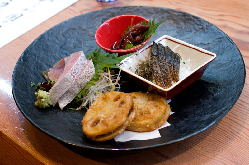 The compact food menu is relatively simple, with a good selection of local seafood and sake-friendly dishes like cucumbers with miso paste, stuffed lotus root and grilled duck. Everything is well prepared, artfully presented, and well-suited to sake.