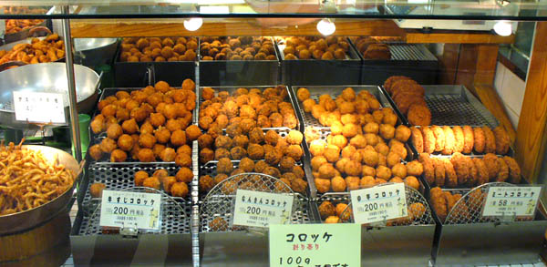 The fry counter: deep-fried octopus tentacles, squid, shrimp and chicken to take out
