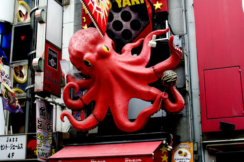 After an evening spent exploring the sake pubs of Osaka's Dotonbori neighborhood, the unexpected sight of a 12-foot-high mechanical crab with thrashing claws and swiveling eyestalks can be an unsettling experience. Here are some other sobering sights from the streets of Dotonbori.