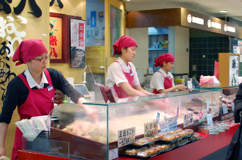 Two or three of the stalls also have tiny counter areas where you can eat, but generally it's take-out only. Tokyu Foodshow also spills out onto the west side of the station on the ground floor, where you'll find even more prepared-food stalls as well as branches of Dean and Deluca and Starbucks.