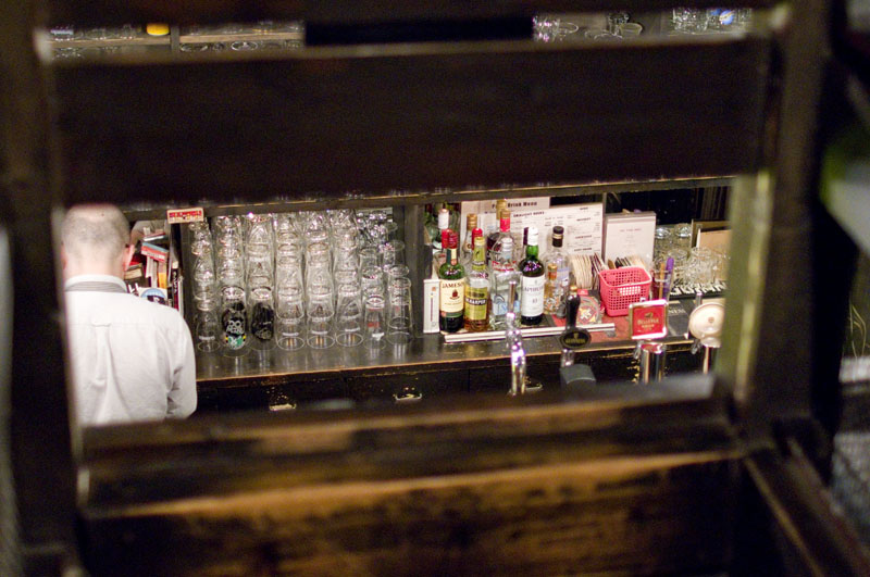 A comfortably cozy little hideaway bar with multi-level seating nooks. Pick your own bottle from the big selection of Belgian and German brews in the refrigerator case. The food menu is limited to light snacks.