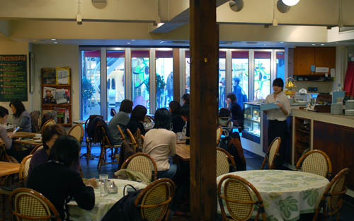 This cute and very spacious cafe has big front windows looking out onto the fashion-shopping alley next to Kotto-dori. The menu offers sandwiches, galettes and assorted pastries for mid-afternoon snacking, as well as a diverse cocktail selection for later in the day.