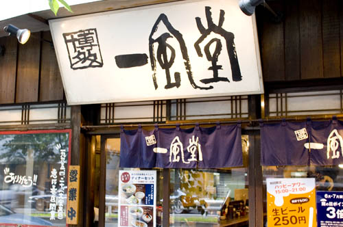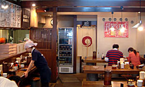The first Tokyo branch of a renowned Hakata ramen shop (they also have a branch at the Shin-Yokohama Ramen Museum), they serve thin, slightly chewy noodles in a pork-based broth ("red" or "white"), with or without extra chashu. You can add your own freshly grated garlic -- you'll find bowls of whole garlic cloves on the counter along with graters.