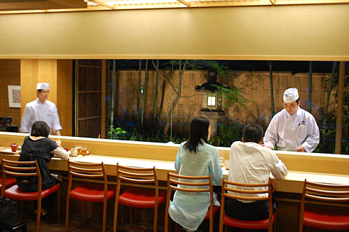 Third-generation kaiseki chef (and sometime TV celeb) Yoshihiro Murata is known for his innovative approach to kaiseki cuisine, drawing on French cooking techniques and ingredients. He has two branches in Kyoto, but this is his first Tokyo venture. Full-blown kaiseki service starts at Y15,750, with lunch priced at Y10,500. No lunch on Mondays.