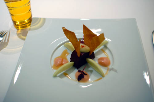 Sophisticated, modern and creative cuisine from Chef Shimomura, a veteran of several distinguished restaurants in the French provinces. Prix-fixe lunches from Y4200, dinners from Y9450.