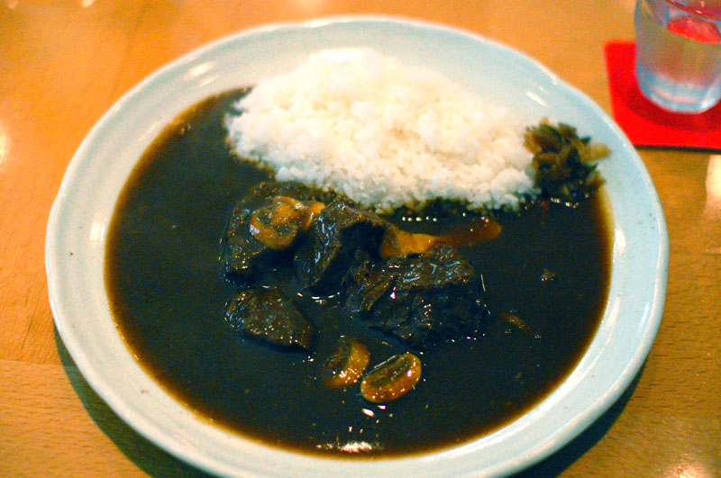 Loup de Mer proves that good yoshoku cuisine needn't be stuck in a time warp. Our lunchtime Hokkaido beef curry (Y1100) was accompanied by a very appetizing salad of head cheese and red-cabbage slivers. The hunks of beef were tender, lean and very flavorful, beautifully complemented by the curry sauce, rich but with a bracing tanginess. The soft but still slightly crunchy deep-red pickles were excellent, with an almost cherry-like flavor.