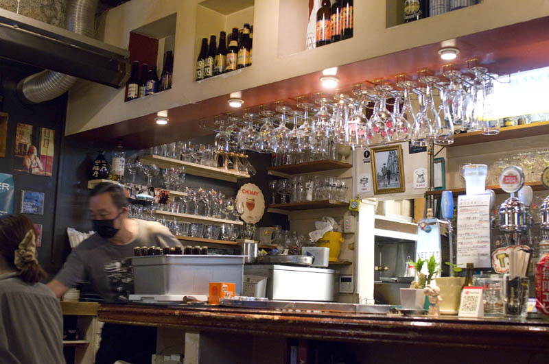 The vibe at this small neighborhood bar is friendly and laid back - comfortable enough to stop in for a drink by yourself or for a quiet conversation with friends. There's a decent selection of Belgians at average-for-Tokyo prices, plus a small snack menu.