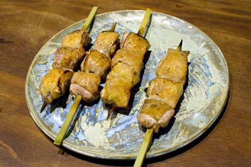 Almost everything here is served shio-style (salted) rather than with sauce, but one exception is the liver - it's prepared semi-raw, and is extremely tender, with a sweetish sauce that complements the flavor. (There's also raw chicken sashimi on the menu.)