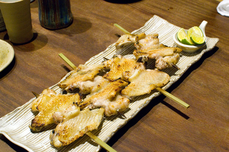 Sampling from the regular, year-round menu, we can recommend the moist and beautifully seasoned tsukune (chicken meatballs) - more crunchy than average thanks to an ample helping of ground cartilage in the recipe. And our chicken wings were grilled perfectly - they passed the crispness test without a hint of dryness.