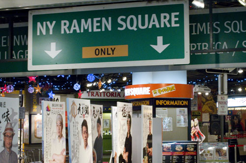 Seven famous ramen shops are gathered together in a NY Times Square-themed food court.